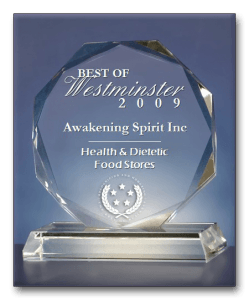WASHINGTON D.C., June 8, 2009 — Awakening Spirit Inc has been selected for the 2009 Best of Westminster Award in the Health & Dietetic Food Stores category by the U.S. Commerce Association (USCA).